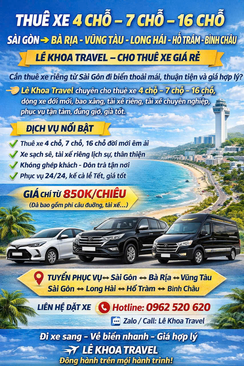 Xe Sài Gòn <> Hồ Tràm – Bình Châu- Xuyên Mộc- Hồ cốc