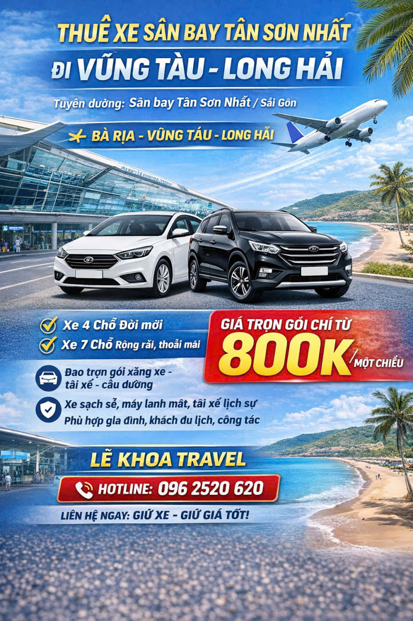 LÊ KHOA TRAVEL – limosaigoncar.com chuyên tuyến Vũng Tàu → TP.HCM, phục vụ 24/7, xe đời mới, tài xế kinh nghiệm.