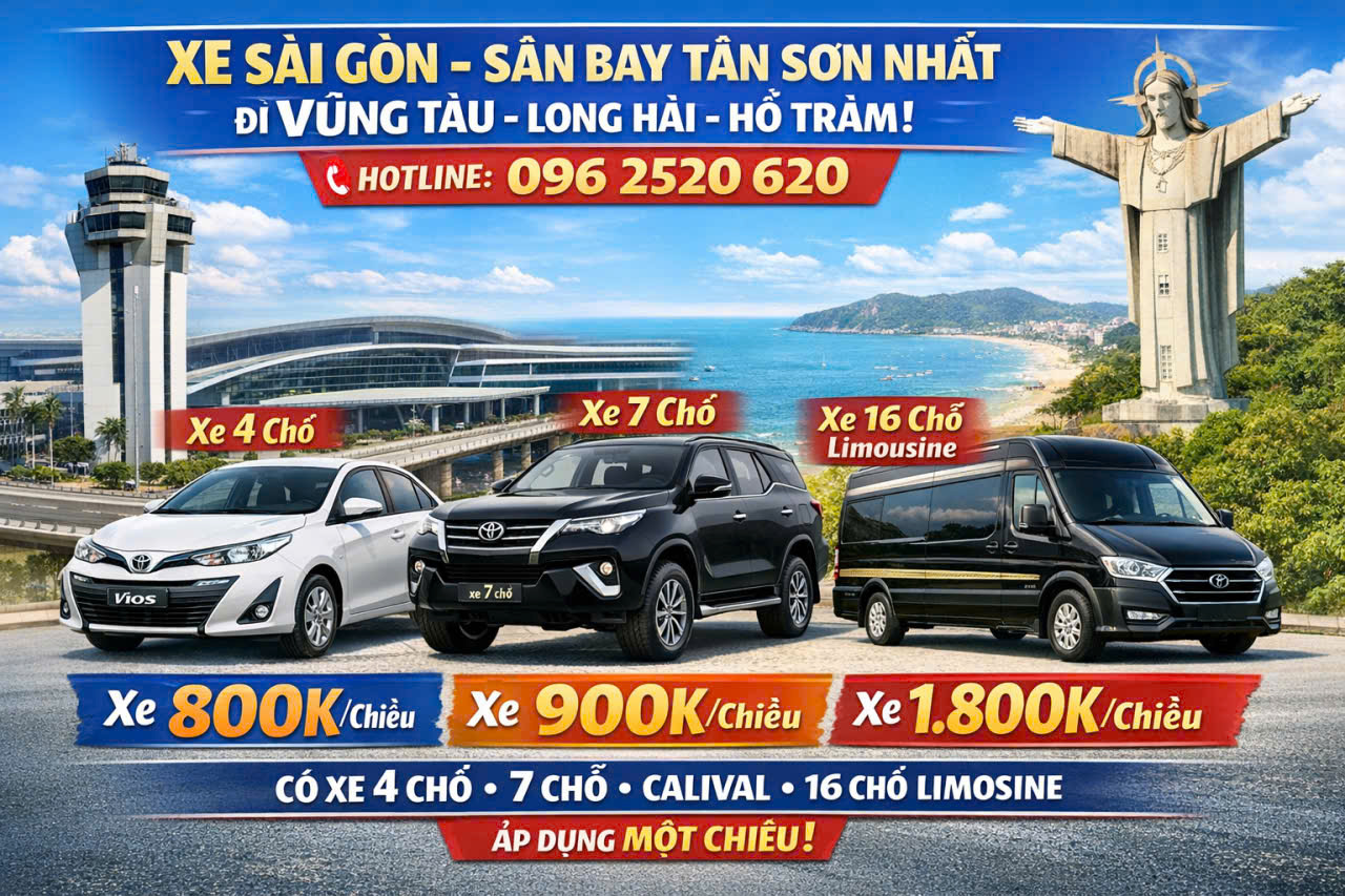 📍 Sài Gòn – Sân bay Tân Sơn Nhất → Bà Rịa – Vũng Tàu – Long Hải – Hồ Tràm